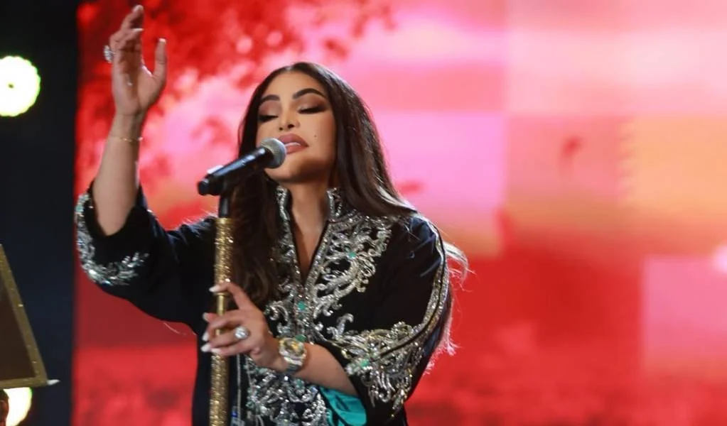 أطلت أحلام بإطلالة شرقية استثنائية تجمع بين الأناقة والفخامة، حيث ارتدت ثوبًا مطرزًا بالفضة تفوح منه التفاصيل اللامعة. جاء الثوب بقصة مستقيمة مع ياقة عالية مفتوحة من الوسط، وتطريزات فضية وكريستالية أضفت لمسة براقة ورونقًا خاصًا بالإطلالة. يعكس العمل اليدوي المصقول بأسلوب يدوي حرفية عالية في كل تفصيلة.