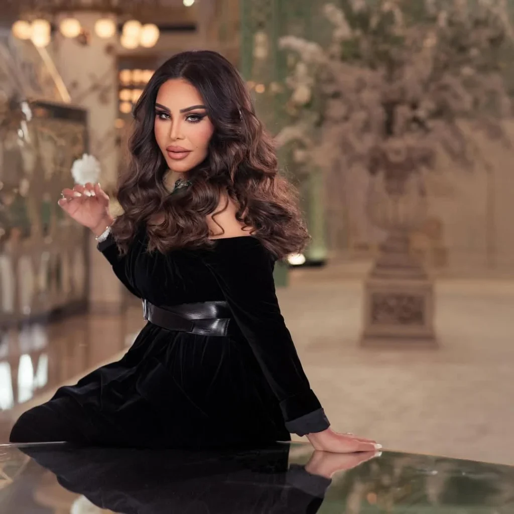 تظهر أحلام في أحدث إطلالاتها بثقة تامة، حيث ارتقت فستانًا أسود مخمليًا بقصة أوف-شولدر أبرزت كتفيها وأضفت لمسة أنثوية جذابة. جاءت التنورة واسعة من الأسفل لتمنح اللوك طابعًا فخمًا ودراميًا، بينما ساعد حزام جلدي في إبراز الخصر وكسر طابع المخمل الكلاسيكي بأسلوب جريء. أكدت التفاصيل التصميمية أن القوة والأنوثة يمكن أن تتوافران معًا في إطلالة متكاملة، وتؤكد حرصها على التجديد واتباع خطوط عصرية تعزز حضورها في عالم الموضة.
