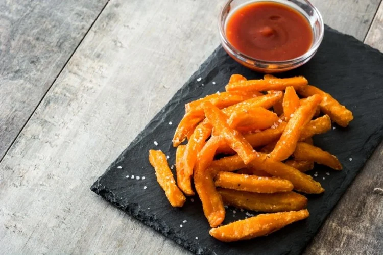 ابدئي بقشري البطاطا الحلوة وقطعيها إلى أصابع رفيعة ومتساوية. انقعيها في ماء بارد لمدة 15 دقيقة لإزالة النشا ثم جففيها جيداً بمنشفة. في وعاء، اخلطيها مع الملح والفلفل والبهارات، وإذا رغبتِ، يمكن تغليفها بالدقيق لإضفاء قرمشة إضافية. سخني الزيت في مقلاة على نار متوسطة إلى عالية واقلي الأصابع على دفعات حتى تصبح ذهبية ومقرمشة من الخارج، ثم ارفعيها على ورق المطبخ لتصفية الزيت وقدميها ساخنة مع الصوص المفضل.