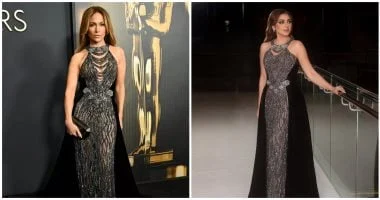 تألقت جنيفر لوبيز بنفس الفستان نفسه خلال حفل Governor Awards في لوس أنجلوس خلال نوفمبر 2024 من مجموعة خريف وشتاء 2024. بقيت القصة عنواناً للفستان مع فتحة علوية عميقة على شكل حرف V مزدانة بسلاسل خرزية مستوحاة من أجواء الألفينات، ما أضفى لمسة جريئة وعصرية على التصميم. اختارت لوبيز تقليل الإكسسوارات، واعتمدت أقراط صغيرة وخواتم ناعمة مع حقيبة كلاتش أنيقة، بينما حافظ المكياج والشعر الأشقر على هدوء الإطلالة ليظل الفستان نجم الإطلالة بلا منازع.