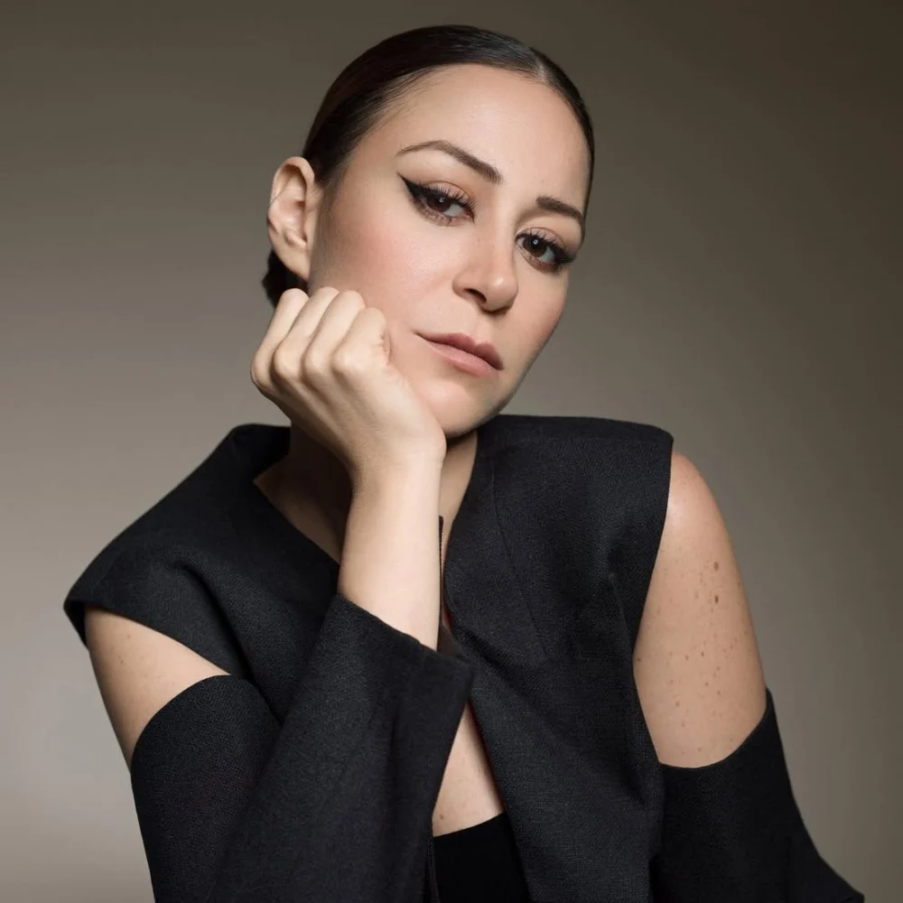 إطلالة منة شلبي برسمة عيون القطة: اختارت مكياجاً يبرز عينيها بقوة من خلال خط آيلاينر سميك ومجنح نحو الصدغين، مع ظلال محايدة على الجفن المتحرك ودمج ظل بنّي دافئ أسفل الرموش السفلية. أكملت البشرة بتوحيد اللون مع كونتور خفيف وبلاشر محايد. الشفاه نيود مطفأ يميل إلى البني الوردي، فيما صُفّف الشعر بشكل مشدود ومسحوب للخلف لإبراز خط الأيلينر الطويل.