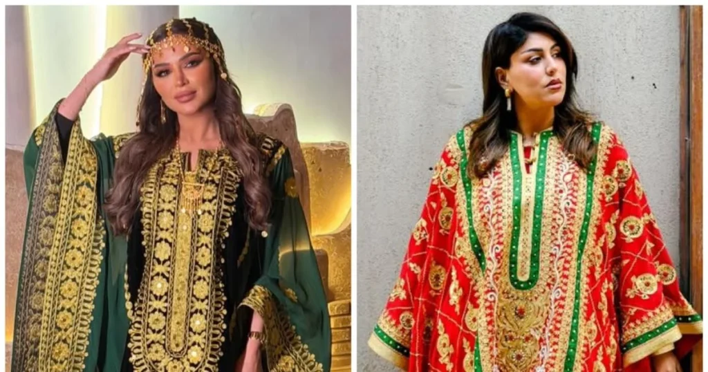 من جهتها، ظهرت دانا الطويرش بقفطان شرقي مستوحى من ألوان علم الكويت، حيث برزت درجات الأحمر والأخضر والأبيض بتناغم أنيق. وتميّز التصميم بتخريمات بارزة وتفاصيل يدوية مشغولة بدقة عالية، ما أضفى على الإطلالة طابعاً احتفالياً يعكس روح المناسبة الوطنية.