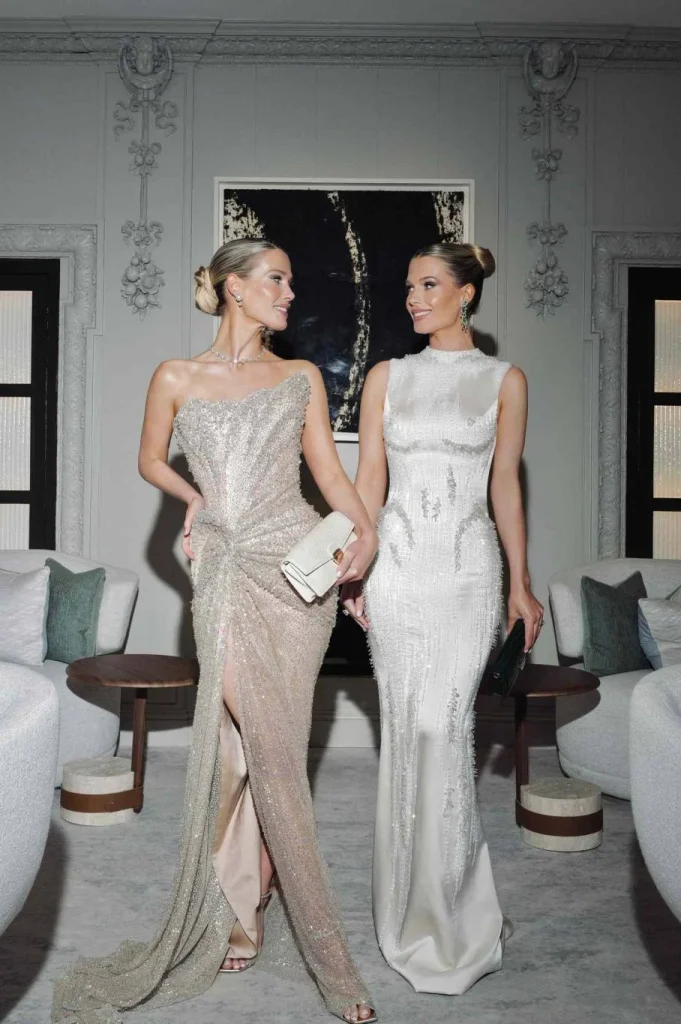 سجلت الأختان التوأم أميليا وإليزا سبنسر حضورًا لافتًا في حفل توزيع جوائز الموضة 2025 بلندن، حيث ارتدتا فساتين متناسقة من تصميم غوراف غوبتا في قاعة ألبرت الملكية. اختارت أميليا فستان بيتال كريستال درابد من غوراف غوبتا، فستانًا يلمع كغبار القمر ويزينه تطريز انسيابي ونقش كريستالي تآكلي. إليزا اختارت فستان غوراف غوبتا عمودي العاجي المطري بكريستال تشريحي من حجر القمر. سجلت الإطلالتان حضورًا يعكس ذوقهما الراسخ في المناسبات المختلفة.