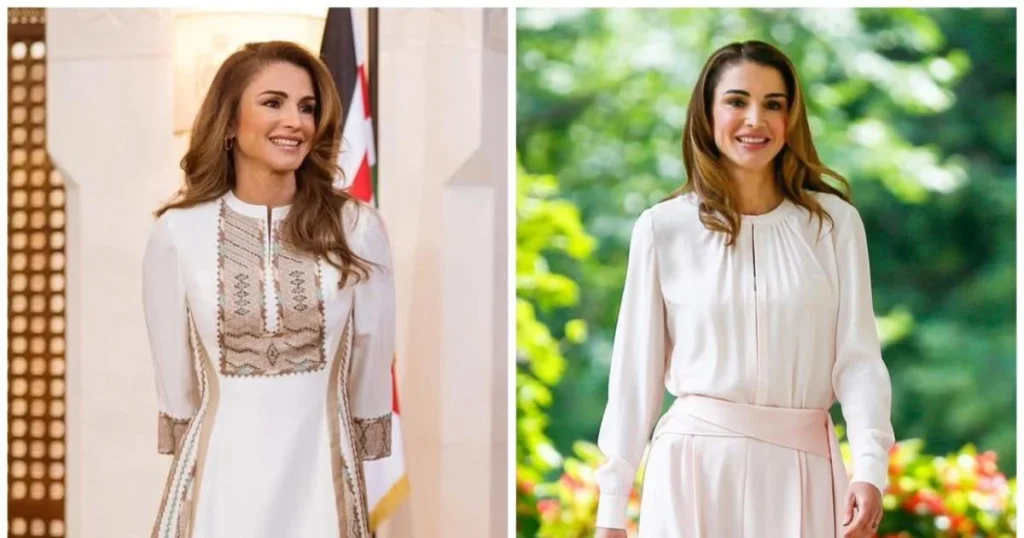 تعتمد الملكة رانيا في إطلالاتها الشرقية على تصاميم بخطوط نظيفة بعيدة عن التفاصيل المبالغ فيها. تُركّز على جودة القماش ودقة القصّات وتوازن الألوان في كل قطعة. هذا الأسلوب يعكس مفهوم الفخامة الهادئة حيث تكون القطعة أنيقة بذاتها دون الحاجة إلى رسومات أو شعارات لافتة. تظهر الإطلالات راقية وعصرية وخالدة في آن واحد.