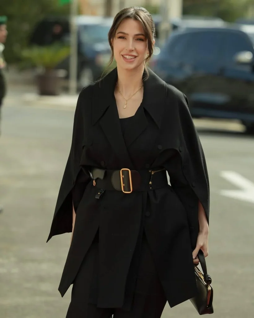 أبرزت تغطيات عام 2025 أن الأميرة رجوة تمثل نمطاً حيوياً يجمع بين الأناقة العملية والذوق الرفيع. اختارت جاكيتاً أسود ملتفاً مع حزام عريض يبرز الخصر ويمنح الإطلالة توازناً ملحوظاً بين الدفء والحداثة. يعكس هذا الخيار أسلوباً عصرياً مناسباً لإطلالات الشتاء الرسمية وتأكيداً لقدرتها على المزج بين اللون والقطع المميّزة.