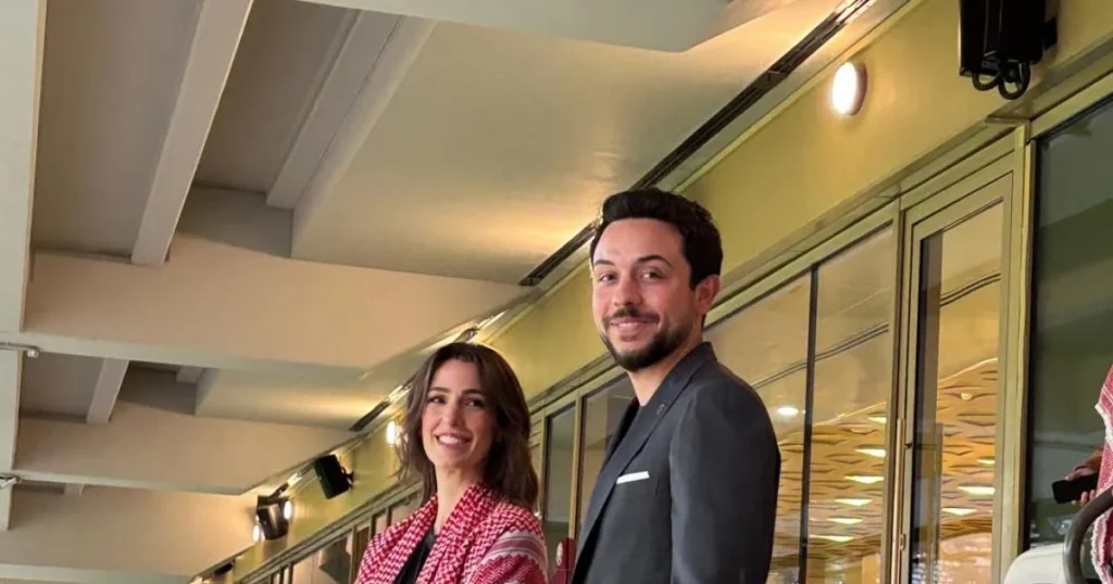 حضَر سمو الأمير الحسين بن عبدالله الثاني وسمو الأميرة رجوة الحسين إلى نهائي كأس العرب 2025 لمؤازرة المنتخب الوطني. اعتمدت الأميرة رجوة إطلالة بسيطة وناعمة باللون الأسود، وتخللتها خطوط بيضاء خفيفة أضفت توازناً على التصميم. ولفتت الأنظار بإسدال الشماغ الأردني باللونين الأحمر والأبيض فوق كتفيها كتحية واضحة للهوية الأردنية وتشجيع صادق للفريق الوطني. اعتمدت في حضورها أسلوباً طبيعياً مع تسريحة شعر منسدلة ومكياج يبرز البشرة المشرقة ولمسات وردية خفيفة تعزز أناقتها وتقرّبها من الجمهور.
