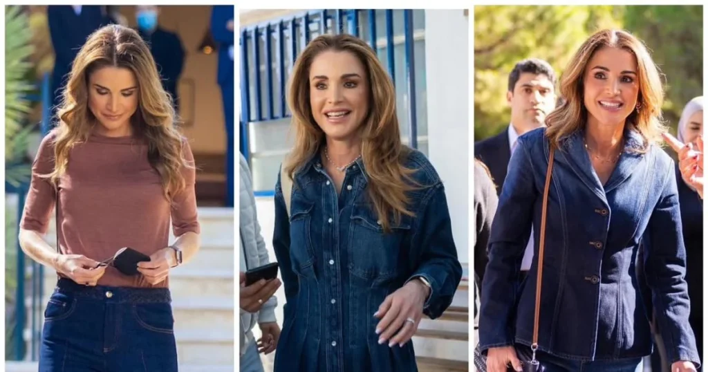 تتميّز الملكة بأسلوب متوازن في تنسيق الدنيم، حيث تحرص دائماً على إبقائه أنيقاً ومناسباً لمكانتها. تعتمد على أطقم دنيم ذات قصات وألوان هادئة، ما يمنح اللوك انسجاماً وأناقة بعيدة عن المبالغة. تختار فساتين دنيم بقصات أنثوية راقية تجمع بين العملية والرقي وتناسب النهارات. تنسق الدنيم مع القمصان الكلاسيكية وتيشيرتات بسيطة لإطلالة عصرية ومريحة في آن.