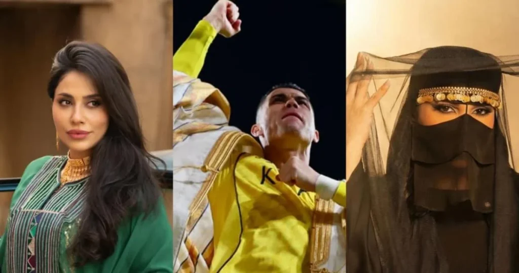 إلهام الفضالة شاركت صورة لها بإطلالة خضراء مستوحاة من الزي التراثي، وكتبت: “عمق تاريخي وقيم راسخة. أدام الله الأمن والأمان على البلاد وأهل المملكة الكرام”. كما نشرت أميرة محمد مقطع فيديو تستعرض فيه عباءة خضراء وتقول: “من يوم بدينا والمجد حكايتنا… اخواني وأهلي في بلدي الثاني المملكة العربية السعودية”. وعبّرت هيفا وهبي عبر X عن تهنئتها: “في ذكرى يوم التأسيس، كل عام والمملكة العربية السعودية قيادةً وشعباً في رفعة ومجد”.