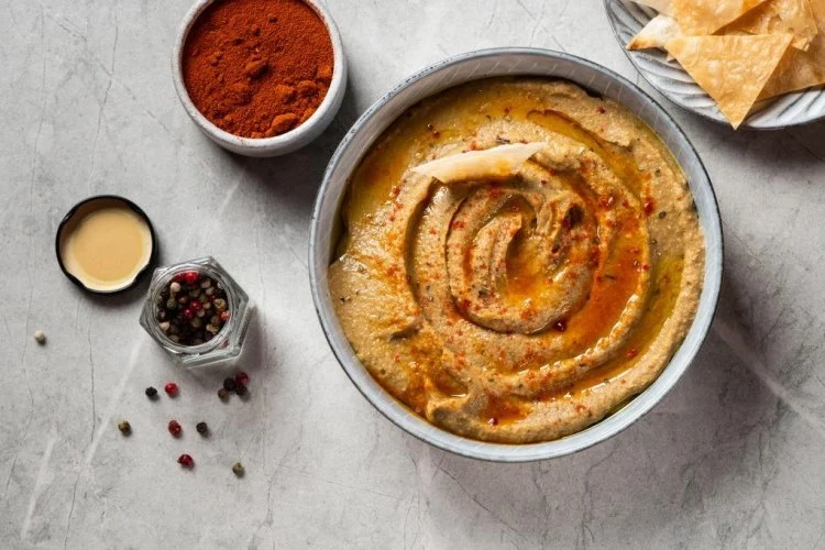 اشوِ الباذنجان على النار مباشرة أو في الفرن حتى يتحمّر القشر ويصبح طرياً من الداخل. اتركوه ليبرد قليلاً، ثم قشّريه وضعي اللب في وعاء. اهرسي اللب جيداً بالشوكة، ثم أضيفي الثوم والطحينية وعصير الليمون واخلطي المكونات جيداً، ثم أضيفي زيت الزيتون تدريجياً مع التقليب حتى تحصلي على خليط ناعم ومتجانس.