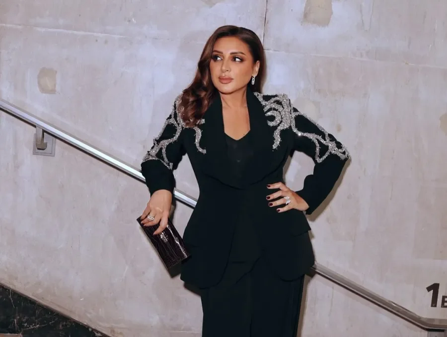 أبهرت أنغام باختيارها بدلة سوداء بتوقيع زهير مراد لأسلوب راقٍ يناسب المناسبات والسهرات. جاء البليزر بقصة محددة عند الخصر مع تطريزات فضية لافتة على الأكتاف، ما أضاف لمسة فنية تعكس بصمة المصمم الفاخرة، أما البنطلون فكان واسعاً ليحافظ على الطابع الكلاسيكي ويمنح الإطلالة توازناً بين القوة والأنوثة. اللون الأسود هنا لم يكن تقليدياً بل جاء بتطريز فضي يمنح البدلة طابعاً مسائياً راقياً، خاصة مع اختيار كلاتش داكن ومجوهرات لامعة. يمكن اعتماد هذه الإطلالة كإطلالة مسائية فاخرة مع حقيبة كلاچة داكنة ومجوهرات لامعة.