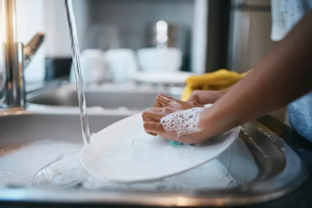 بعد الانتهاء من غسل الأطباق، ضع كريمًا مرطبًا لإعادة ترميم حاجز الجلد، لأن البشرة الرطبة تحتفظ بالحرارة بشكل أفضل وتكون أقل عرضة للجفاف. احرص على أخذ فترات راحة قصيرة أثناء تنظيف كميات كبيرة من الصحون لتجفيف اليدين وتدفئتهما قبل الاستمرار. هذه المواقف البسيطة تساعدك على حماية اليدين من عضة الشتاء وتخفيف الإجهاد الموضعي.