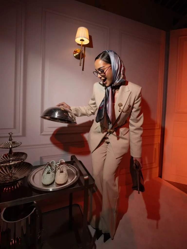 أطلت بسمة بوسيل في أحدث ظهور ببدلة أنيقة تجمع بين الكلاسيكية واللمسات العصرية الراقية. اختارت الفنانة المغربية بدلة من ثلاث قطع باللون البيج تضمنت توباً بزر كبير وبنطالاً كلاسيكياً، مع سترة مفتوحة مزدانة بأزرار مميزة. أكملت الإطلالة بحزام رفيع مزين بقطعة دائرية من الذهب وبروش على شكل سلسلة ذهبية. غطت شعرها القصير بشال حريري بتموجات البنفسجي والأسود، وارتدت نظارات بإطار ملون وحقيبة جلد كبيرة باللون البني إلى جانب مجوهرات ذهبية ناعمة تتضمن عقداً رقيقاً وخواتم بسيطة.
