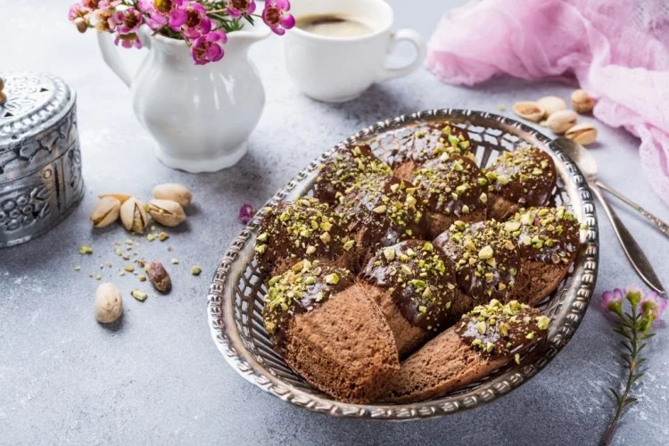 غمّسي نصف كل حبة بيتيفور في الشوكولاتة المذابة، ثم زينيها بالمكسرات المجروشة. ضعي القطع في طبق التقديم، واتركيها لتتماسك الشوكولاتة قبل التقديم. يمكن تقديم بيتيفور الشوكولاتة كخيار حلو مميز مع القهوة أو الشاي.