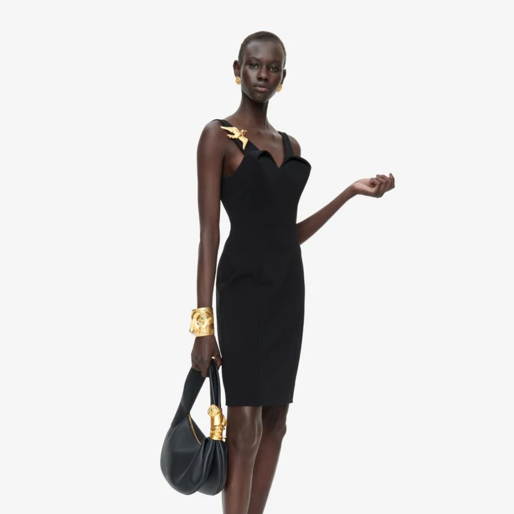 وتضيف المجوهرات لمسة نهائية ساحرة، مثل أساور وجه بتصاميم سريالية، وأقراط على شكل مفتاح تلتقط الضوء. وخاتم مزين بحجر الراين، وبروش الحمامة الشهير من ذهب Schiaparelli يمنح كل قطعة حضوراً فريداً. تتناغم هذه التفاصيل مع خامات الإطلالة وتبرز بصمة العلامة في كل قطعة. تشجع القطع على التنسيق بين الفن والموضة في الحياة اليومية.