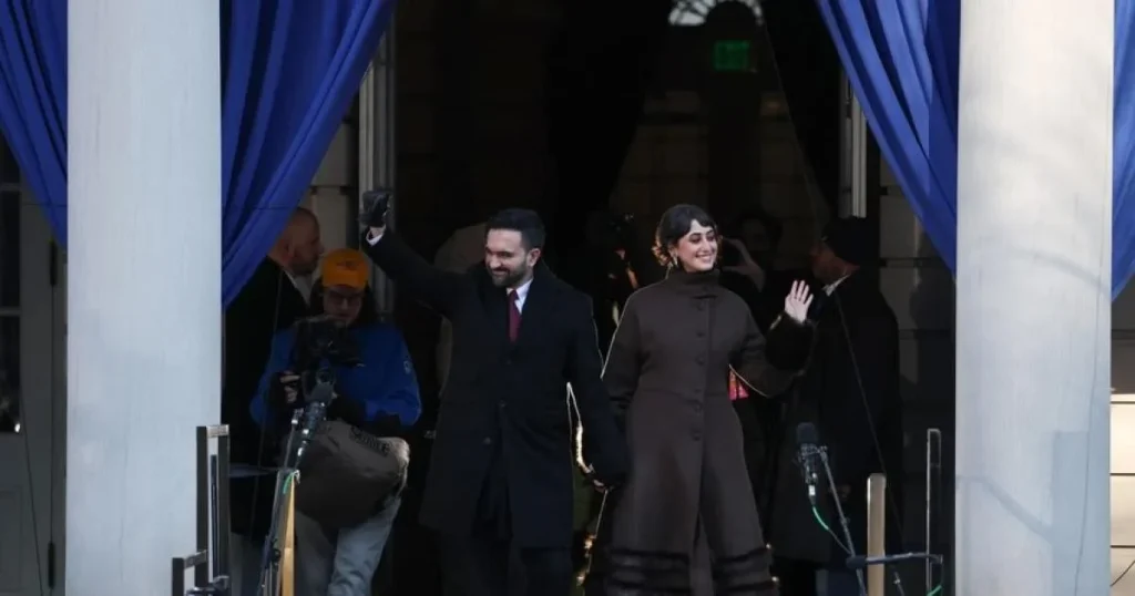 عرضت راما دواجي إطلالتين بارزتين خلال مراسم التنصيب التي شهدتها نيويورك، فلفتت الأنظار بإطلالة تجمع بين الحداثة والأنثوية العملية. وفي افتتاح الاحتفال، حضرت خلال مراسم منتصف الليل القانونية في محطة مترو مغلقة أسفل مبنى بلدية نيويورك مرتدية معطف Balenciaga فنتيج مستعار من مكتبة Albright Fashion Library، مع أقراط أرشيفية من New York Vintage. كما نسّقت المعطف مع شورت أسود من The Frankie Shop وحذاء Miista مصنوع من جلد البقر النباتي ومزوّد ببطانة مريحة، وبلغ سعره 630 دولارًا، وهو ما جسّد عشقها للموضة المستدامة والدائرية. أما زوجها ممداني، فظهر متناسقاً معها مرتدياً ربطة عنق حريرية من Kartik Kumra صنعت بتقنية الجاكار من أسام شمال شرق الهند، ما أضاف لمسة عالمية للظهور الرسمي.