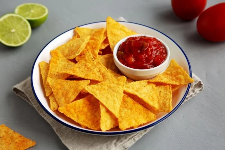 جهّز هذا الوصف رقائق التورتيلا مع صوص الطماطم وفق خطوات محددة لضمان نتيجة مقرمشة ونكهة متوازنة. تشمل المقادير أربع أرغفة من خبز التورتيلا مع 2 ملعقة كبيرة من زيت الزيتون ورشة ملح وبابريكا. اقطع خبز التورتيلا إلى مثلثات واربطها في صينية الفرن، ثم ادهن القطع بزيت الزيتون بمقدار 2 ملعقة كبيرة واوزع الملح والبابريكا حسب الرغبة. ادخل الصينية إلى الفرن المسخن مسبقاً على 180 مئوية، واخبزها لمدة 10–15 دقيقة حتى تصبح ذهبية ومقرمشة.