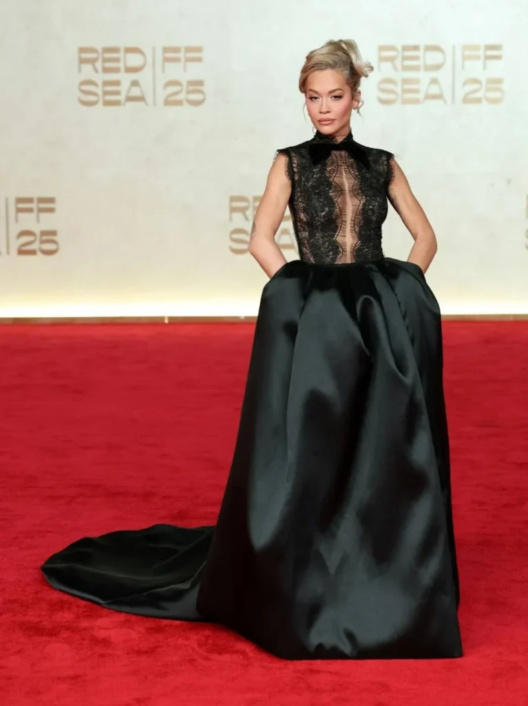 شاركت ريتا أورا في السجادة الحمراء للدورة 2025 من مهرجان البحر الأحمر السينمائي الدولي، المقام في الفترة من 4 إلى 13 ديسمبر الجاري في حي البلد التاريخي بمدينة جدة في المملكة العربية السعودية. ارتدت فستاناً أسود مكشوف الظهر مع صدرية دانتيل شفافة وتيّاب طويل، وهو فستان أضفى عليها لمسة كلاسيكية وأنيقة. رُفع الشعر لإبراز تصميم الظهر الجريء، ما أضفى على الإطلالة طابعاً راقياً وهادئاً. أظهرت الإطلالة جرأة أنيقة تعزز حضورها أمام الجمهور.