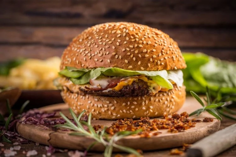 توضح إدارة المطاعم مكونات ساندويش برجر على طريقة المحلات. يتكوّن اللحم المفروم من 500 غرام من لحم البقر المطحون، وتُضاف إليه حبة بصل صغيرة مفرومة ناعماً. يُتبّل الخليط بملعقة صغيرة من الملح ونصف ملعقة صغيرة من الفلفل الأسود وبودرة الثوم بمقدار ملعقة صغيرة حتى تتجانس النكهات. تجهّز مكونات أساسية لإكمال التكوين النهائي مثل الخبز والجبن والخس كخيار قابل للاستخدام.