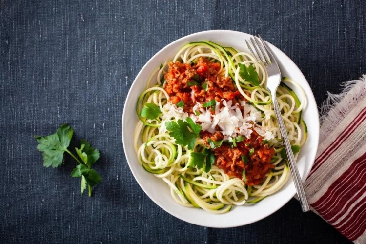 استخدم الكوسا لصنع سباغيتي منخفضة السعرات عبر تقطيعها إلى شرائط تشبه السباغي. تشمل المقادير اثنتين من الكوسا متوسطتي الحجم، وملعقة صغيرة من زيت الزيتون، وفص ثوم مفروم، ونصف كوب من صلصة الطماطم الطبيعية أو صلصة البيستو الخفيفة، ورشة ملح وفلفل أسود، وملعقة كبيرة من جبن البارميزان للتزيين. يمكن إضافة أوراق الريحان الطازجة حسب الرغبة لإضفاء نكهة عطرية.