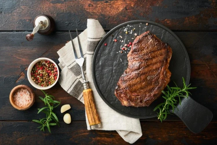 جهّز مكونات ستيك اللحم المشوي لسفرة رمضان وفق الوصفة التالية. لحم ستيك بقري طري مقداره قطعتان. زيت الزيتون مقدار 2 ملعقة كبيرة، الثوم فصّان مهروسان، الملح ملعقة صغيرة، فلفل أسود نصف ملعقة صغيرة. بابريكا نصف ملعقة صغيرة (اختياري)، روزماري نصف ملعقة صغيرة، وتُستخدم الزبدة ملعقة صغيرة لإضفاء نكهة غنية.