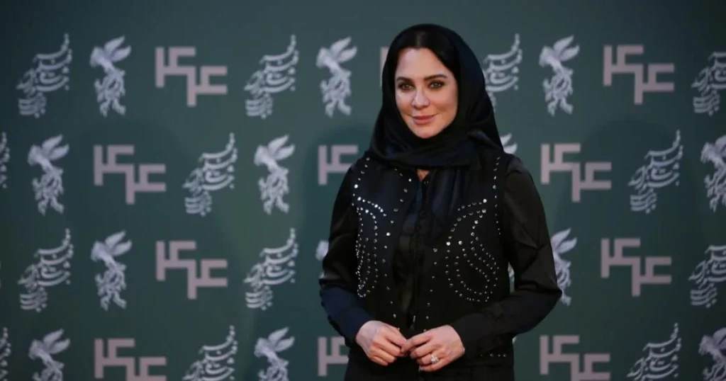 سلاف فواخرجي بالحجاب أثناء حضورها العرض الخاص في طهران