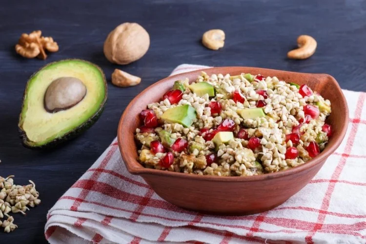 ابدأ بغسل الكينوا جيداً ونقعها لبضع دقائق قبل الطهي. اسخن الماء بمقدار كوبين في قدر حتى يصل إلى درجة الغليان، ثم أضف الكينوا واتركها تطهى حتى تمتص الماء بالكامل وتصبح طرية خلال نحو 15 دقيقة. بعد النضج، اترك الكينوا لتبرد قليلاً كي تكون جاهزة للخلط. استخدم كوباً واحداً من الكينوا المحضّرة كقاعدة للوصفة مع بقية المقادير.