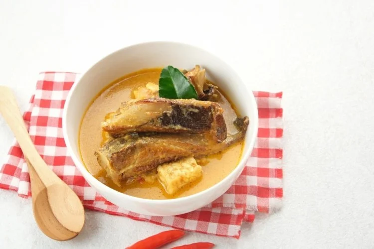 تطرح الوصفة المقادير الأساسية لإعداد سمك بالكاري مع حليب جوز الهند. تشير إلى أن سمك الفيليه يزن 500 غراماً ومقطع إلى قطع متوسطة، وأن البصل حبة متوسطة مفرومة ناعماً. تتضمن المكونات الإضافية ثلاثة فصوص ثوم مفرومة، وملعقة صغيرة من الزنجبيل المبشور، و2 ملعقة كبيرة من الزيت النباتي. كما تشمل بذور الخردل بمقدار ¾ الملعقة الصغيرة، و20 ورقة من ورق الكاري، ونصف ملعقة صغيرة من الكركم. إضافةً إلى كوب من حليب جوز الهند ومرق السمك حسب الحاجة أو الماء، مع عصير ليمون كبيرة بمقدار ملعقة كبيرة، وملح وفلفل أسود حسب الرغبة، مع 2 ملعقة كبيرة من الكزبرة الخضراء المفرومة كزينة.