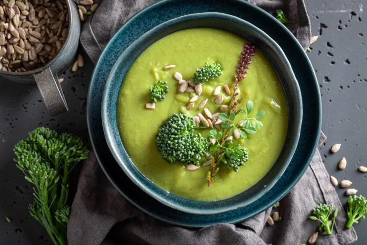 يبدأ الطاهي بتسخين الزبدة في قدر على نار متوسطة ثم يضيف البصل المفروم ويقلبه حتى يذبل ويصبح شفافاً. بعدها يضاف الثوم المفروم ويقلب مع البصل لدقيقة حتى تفوح الرائحة. ثم يضاف البروكلي ويقلب مع المكونات لمدة دقيقتين. يضاف المرق وتترك الشوربة تغلي، ثم تخفف النار وتغطّى القدر لمدة 10–15 دقيقة حتى ينضج البروكلي.