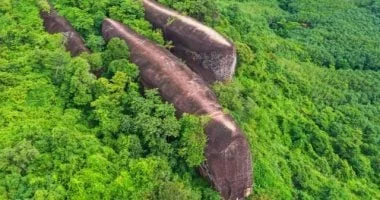 من الأعلى تبدو الصخور الثلاث كأنها تطفو فوق الغابة، وتُرى كعائلة من الحيتان الأم والأب والصغير تسبح في محيط أخضر. تقود مسارات محددة المتنزهين إلى الجهة الخلفية للتكوينين الأكبر حجماً وتتيح رؤية نهر ميكونغ والغابات المحيطة وجبال لاوس البعيدة. رغم أنها ليست بقايا حية، يخلق الوهم البصري تجربة فريدة تشجع الزوار على التأمل في أسرار الطبيعة. تشهد المنطقة إقبالاً من المسافرين وهواة الجيولوجيا والمصورين الذين يلتقطون لحظات هذا المشهد الرائع.