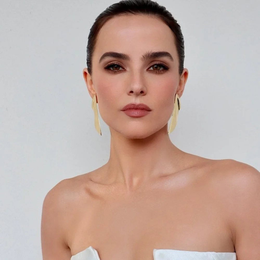 تطرح Zoey Deutch مكياج سموكي قوي وترابي يدمج الظلال البرونزية الداكنة مع خطوط سوداء ممتدة على الجفن العلوي. يتم سحب اللون البني العريض مع لمسة من اللمعان على أسفل الجفون لإضفاء عمق إضافي، وتُحافظ الرسمة على خطوط كحل سوداء رفيعة عند حدود العينين. تُثبت البشرة بمكياج موحّد وتُبرز البلاشرات البرونزية على الوجنتين لإضاءة دافئة وطابع مميز. يظل الأسلوب محافظاً على توازن الظلال مع إبراز العينين بشكل واضح وجريء.