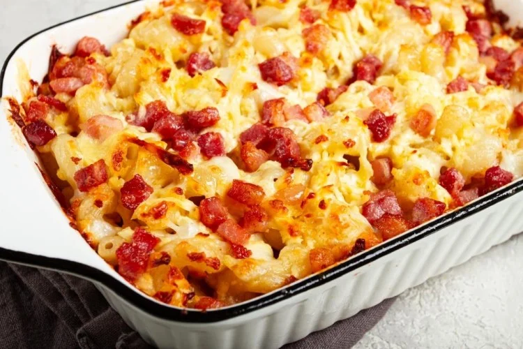 يجهز الشيف طاجن مكرونة بالبسطرمة من مكونات محددة تضمن نكهة غنية وتوازنًا في القيم الغذائية. تتكوّن هذه المكونات من معكرونة بنِي مقدارها 500 غرام، وصلصة بشاميل تبلغ 4 أكواب، وفليفلة ملونة كوب مقطع مكعبات صغيرة. يُقطع البسطرمة إلى قطع صغيرة بوزن 250 غراماً، وتأتي شرائح الزيتون الأسود بمقدار 250 غراماً، ويُبشَّر الجبن الرومي بواقع 125 غراماً، كما يُبشَّر جبن الموزاريلا بمقدار 125 غراماً. يُضاف الزيت النباتي بمقدار 2 ملعقة كبيرة وبقسماط مطحون بمقدار 2 ملعقة كبيرة، وتُراعى إضافة الملح والفلفل حسب الرغبة.