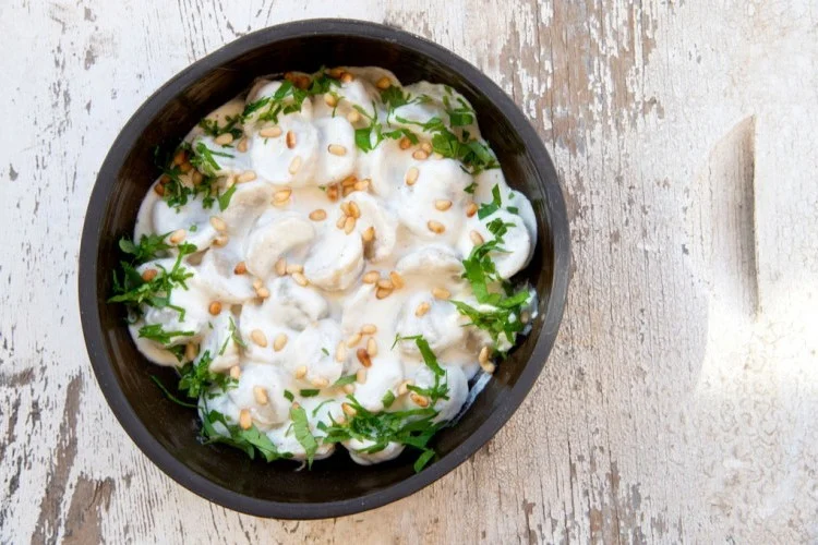 اغلي ماءً مملحاً بقدر كافٍ، ثم أضيفي حبات الشيشبرك واتركيها تغلي لمدة 12 دقيقة حتى تنضج. اخلطي 2 كيلوجرام لبن زبادي مع 6 ملاعق كبيرة نشاء وملح حسب الرغبة في قدر منفصل، وسخنيه مع التحريك المستمر حتى تتكاثف. سخني السمن النباتي مع الثوم المهروس حتى يتحول لونه إلى الذهبي، ثم صبيه فوق الشيشبرك لإضفاء نكهة مميزة والتقديم ساخناً.