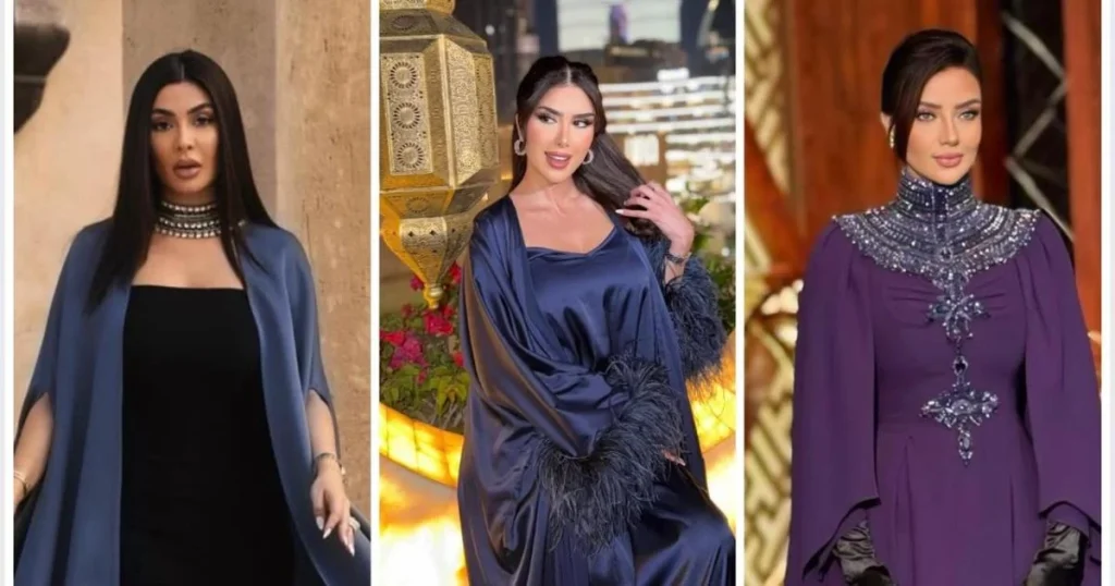 أما شهد الخطاب فاختارت إطلالة ساتانية أنيقة، حيث ارتدت فستاناً منسدل اللون الكحلي ونسقت فوقه عباية من نفس الخامة واللون. وتميزت أكمام العباية بتفاصيل الريش البارزة التي منحت الإطلالة طابعاً فاخراً ومميزاً. كما عززت الإطلالة بإكسسوارات بسيطة لإبراز القوام وروح الشهر الكريم.