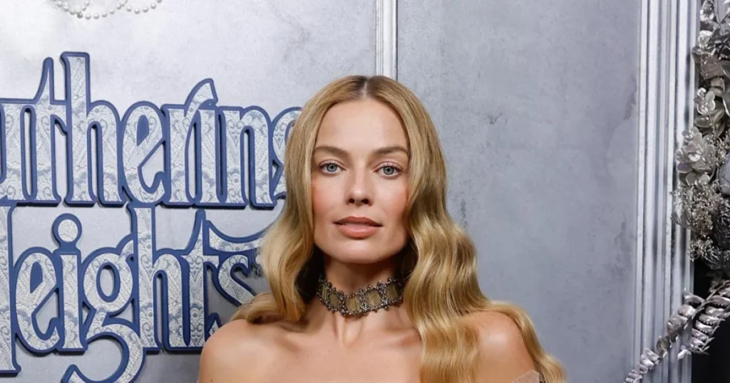 ظهرت مارغوت روبي في ليلة الاحتفال بسيدني بالعرض الأسترالي الأول لفيلم Wuthering Heights مرتدية فستان كوتور بلون الإكرو يميل إلى الصدأ حمل توقيع Ashi Studio. جاء هذا الفستان مستلهمًا من الكورسيه في القرن الثامن عشر، كتعبير مباشر عن الأجواء الفيكتورية التي تهيمن على قصة مرتفعات ويذرنغ. تم تنفيذ الجزء العلوي بالتعاون مع صانع الكورسيه الأسطوري Mr. Pearl، حيث بدا الصدر المشدود كقطعة أثرية عتيقة بفضل لمسات يدوية من الطلاء منحت القماش تأثيرًا معتّقًا يوحي بمرور الزمن. انساب الفستان إلى أكمام شفافة من التول منسدلة على الأكتاف، فيما اتخذت التنورة شكل “حورية البحر” بطبقات كثيفة من التول المكشكش، تعمّد Ashi Studio تمزيق أطرافها وإضفاء لمسة مهترئة عند الحواف. وأكملت روبي الإطلالة بمجوهرات من لورين شوارتز، عبارة عن طوق مرصع بالألماس من الذهب الأصفر والمؤكسد، عزز النفحة القوطية، إلى جانب خواتم لافتة وحذاء مخصص من Manolo Blahnik ليكتمل مشهد يجمع بين الفخامة والتمرد.