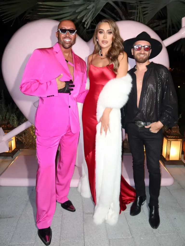 حضرت مايا دياب حفل علامة سكيمز بمناسبة عيد الحب في مطعم Maison Revka بدبي كضيفة شرف. أظهرت حضوراً انثوياً أنيقاً وسط أجواء مليئة بالباقات الزهور الرومانسية من حولها. ارتدت فستاناً أحمر طويلاً من الساتان بتصميم منسدل مع حمالتين دقيقتين كاشفاً عن قوامها الرشيق. أكملت الإطلالة بشاح فرو أبيض على كتفيها مع سلسلة ألماس متدلية حول عنقها وأقراط مرصعة متناسقة.