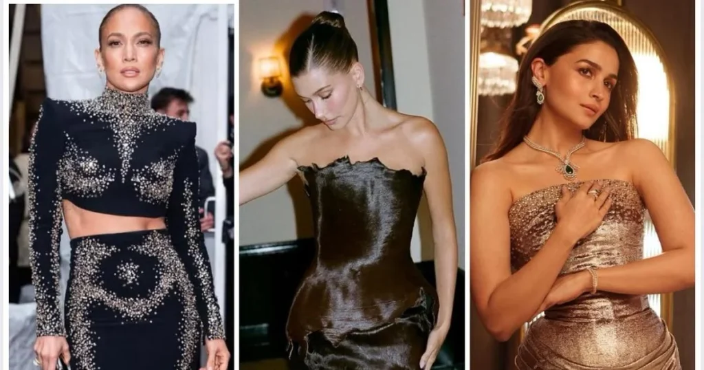 أعلنت عليا بهات عن حضورها بإطلالتين كوتور من توقيع رامي قاضي ضمن تعاون خاص مع دار Malabar Gold and Diamonds، وهو ما يعكس فتح بوليوود أمام المصممين العرب. جاءت الإطلالة الأولى بفستان فضي لامع من قماش اللوريكس مزين بتطريزات من الكريستال وأحجار شفافة بأسلوب فني يشبه الغيوم المتلألئة. أما الإطلالة الثانية فكانت أكثر عصرية، حيث ارتدت بليزر بني داكن من تويد مصقولاً نسقته مع تنورة حريرية مطبوعة ومكسرة من مجموعة Meydān، ليظهر تلاقي الطابع الكلاسيكي بالهوية المعاصرة.