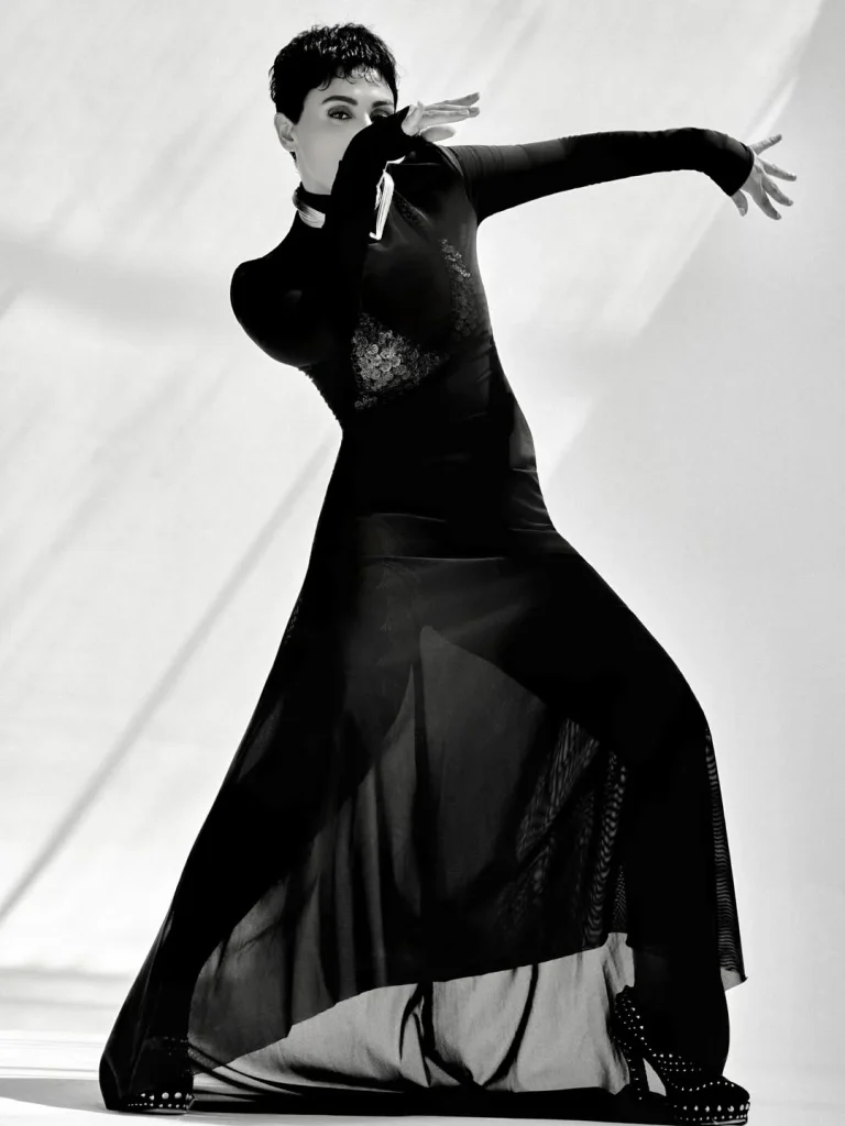 أبرزت ميس حمدان أناقة جريئة تجمع بين البساطة والفخامة في الثوب الذي ارتدته مؤخرًا. اختارت فستانًا أسود من الشيفون بقصة منسابة تعكس نعومة الحركة وهدوء الحضور. تميّز التصميم بياقة عالية من الشيفون تضفي طابعًا جريئًا وأنيقًا في آن واحد، وتحتها براليت مطرزًا بالترتر عند منطقة الصدر ليمنح الفستان لمسة براقة ومتقنة.