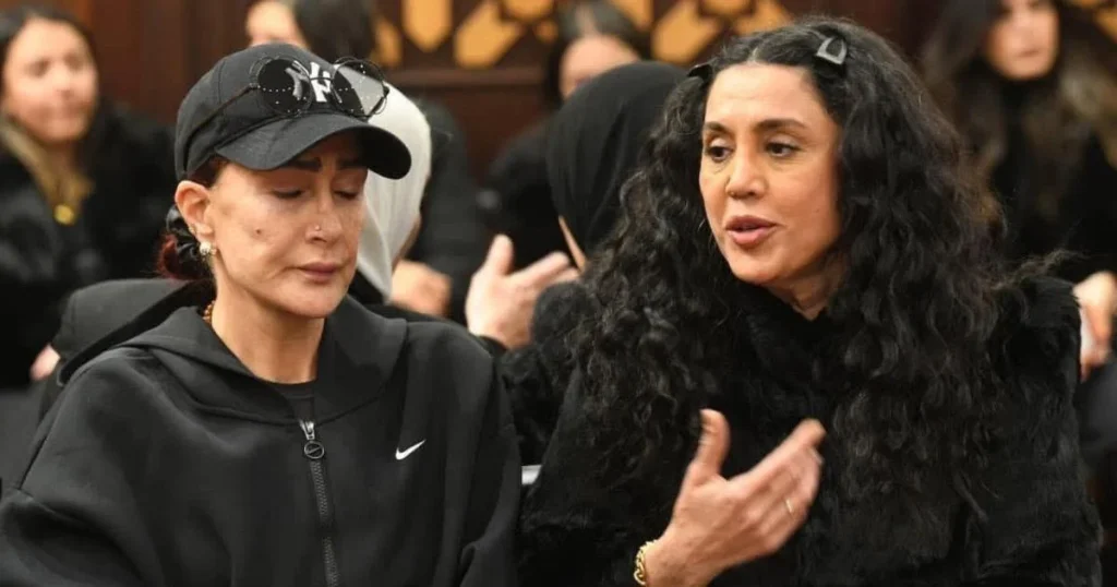 كان في مقدمة المستقبِلين محمد سامي، زوج مي عمر، واقفاً في الصفوف الأولى إلى جانبها، فيما بدت مي متأثرة بشكل واضح أثناء تلقي العزاء.