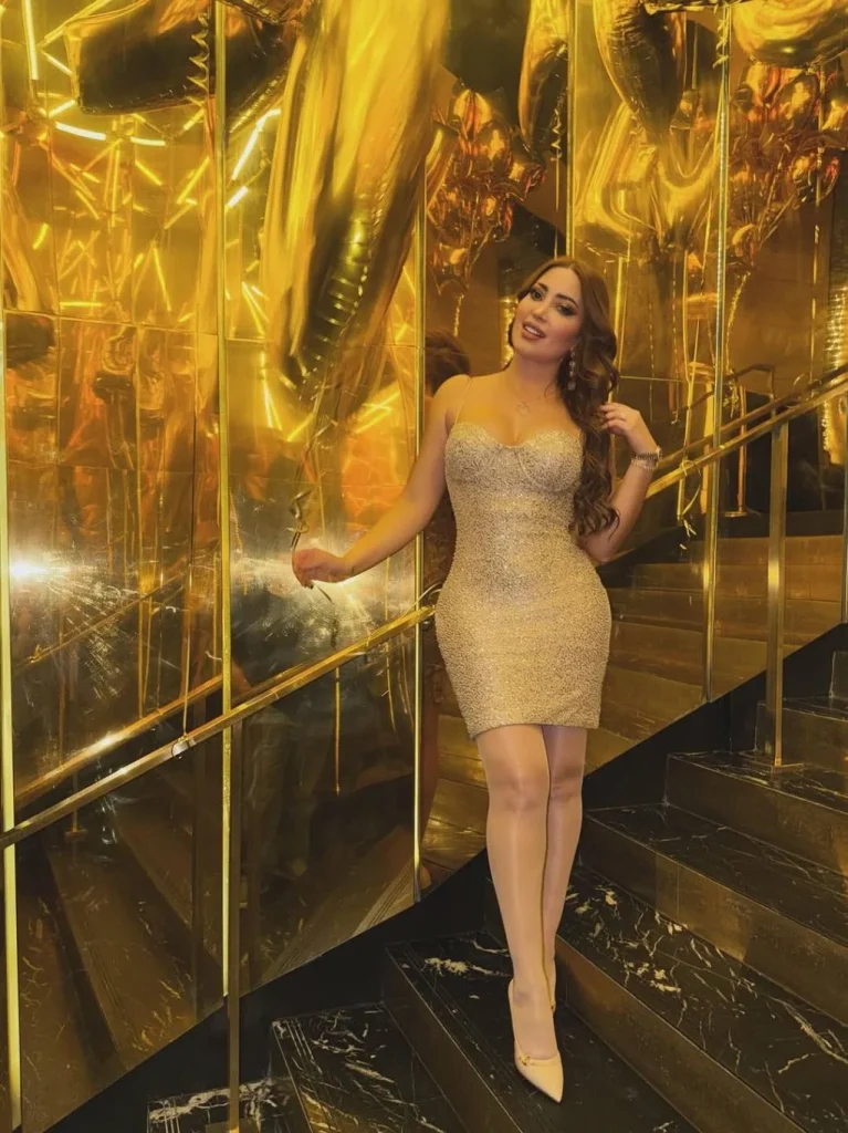 أعلنت النجمة نسرين طافش عن احتفالها بنهاية عام 2025 مع زوجها رجل الأعمال أحمد جوهر بطريقة مميزة. اختارت لهذه المناسبة فستاناً أنيقاً بتفاصيل رقيقة. التصميم مجسّم وقصير بلون ذهبي لامع مع قصة ضيقة وحمالات رفيعة. وتعاون مع ذلك كولون لامع باللون البيج وأكملت الإطلالة بحذاء نسائي كلاسيكي ومجوهرات ناعمة أضافت لمسة من الفخامة.