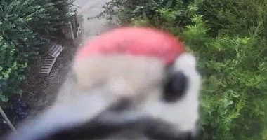 رصدت كاميرا المراقبة هجوم نقار خشب على عدسة باب منزل البريطاني ستيفن بروف في تونبريدج بمقاطعة كينت. اقترب الطائر من العدسة واتخذ وضع المواجهة ثم بدأ ينقرها بضربات متتابعة ومتتالية. استمر النقر لمدة تتراوح بين 10 و15 دقيقة دون أن تتراجع المحاولة في البداية. ثم انهارت العدسة في نهاية المطاف بسبب القوة المتواصلة.
