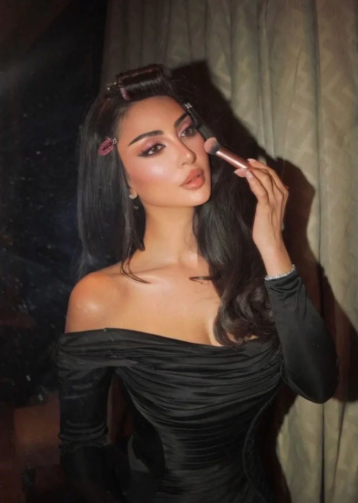 ترك الشعر الأسود الطويل منسدلاً بنعومة على الكتفين. اعتمدت مكياجاً ترابياً دافئاً يبرز الملامح بروية، مع لمسة أحمر شفاه وردي لامع. تعكس هذه الإطلالة توازناً مثالياً بين الرقي والجرأة وتؤكد تميّز اختيار القطع الفاخرة في موسم الشتاء.