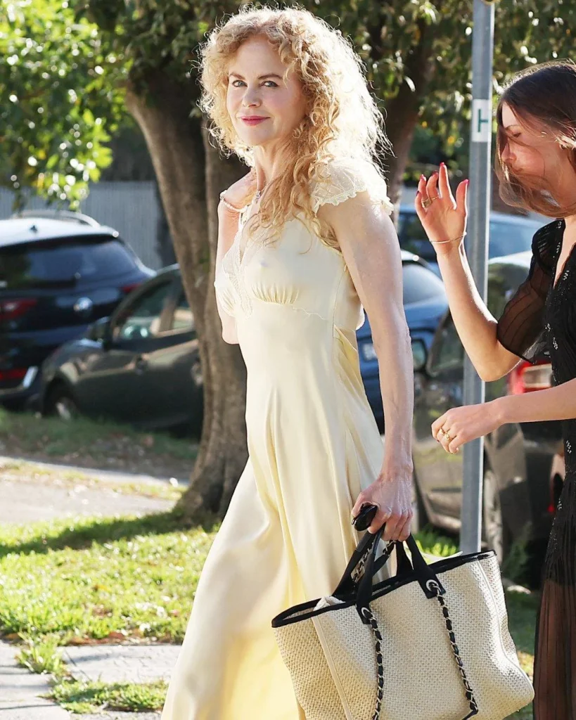 حضرت نيكول كيدمان احتفال عيد الميلاد في سيدني مع ابنتيها صنداي روز وفيث أوربان. أبرزت شعرها المجعد الطبيعي ضمن الإطلالة، فاختارت فستاناً حريرياً أصفر خفيفاً بأكمام دانتيل قصيرة. أكملت الإطلالة بصندل ذهبي من مانولو بلانيك طراز سوسا، وحقيبة يد من الرافيا شانيل. وتذكّرت تجعيداتها الطبيعية إطلالتها في الثمانينات حين كان لون الشعر أحمر ناري.