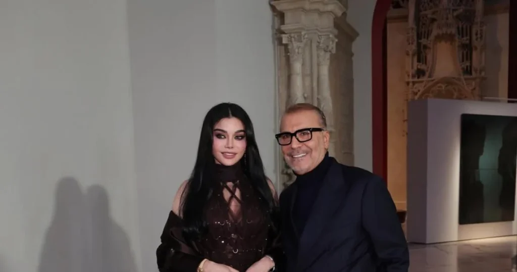 وقد خطفت هيفاء وهبي الأنظار باطلالة بنية فريدة من توقيع جورج شقرا. ارتدت فستاناً بنياً بياقة عالية وقصة مفتوحة عند الصدر، وأكملت الإطلالة بطبقة طويلة من الشبك وفستان شبكي بني اللون. وأكملت بتجربة كاب طويل منسجم مع تفاصيل الترتر لإضفاء لمسة درامية وتوازن بصري.