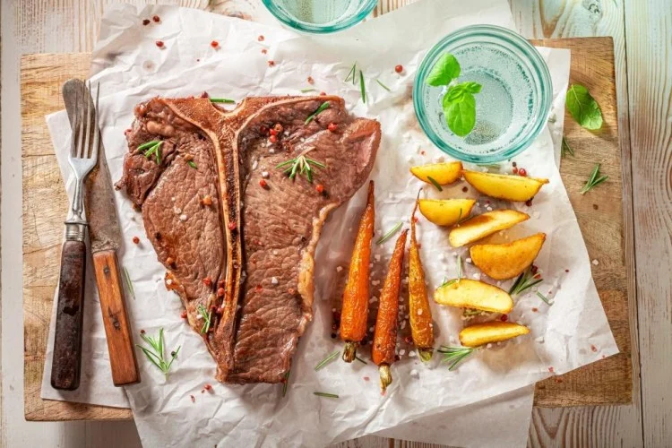 ضعي خليط الخضروات واللحم المتبل في منتصف ورق الزبدة. أضيفي طبقة من الخضروات تليها طبقة من اللحم وباقي الخضار. أضيفي كوباً من الماء المغلي للمساعدة في النضج بالبخار. أغلقي ورق الزبدة بإحكام ثم أغلقيها بورق الألومنيوم لمنع تسرب البخار. ادخلي الصينية إلى فرن مسخن مسبقاً على درجة 200 مئوية لمدة ساعة إلى ساعة ونصف بحسب سمك القطع، وعندما ينضج الخليط افتحي الورق بحذر وادخليه تحت الشواية لبضع دقائق ليحصل السطح على لون ذهبي ثم قدميه ساخناً مع الأرز الأبيض أو الأرز بالشعيرية.
