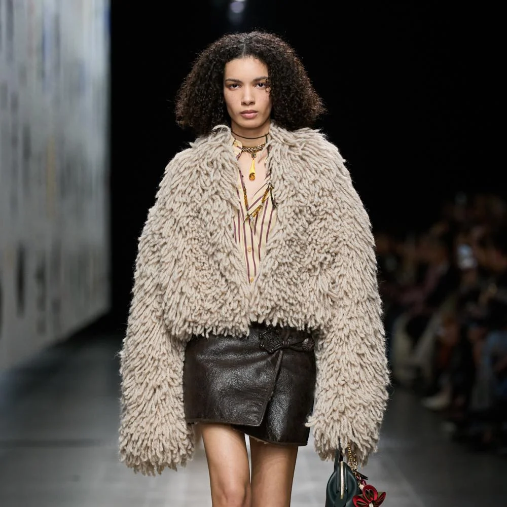 تعود التنورة الجلدية القصيرة هذا الموسم بأسلوب متجدّد يجمع بين الجرأة والدفء. في عروض خريف وشتاء 2025–2026، تُعد قطعة محورية يمكن تنسيقها بطرق ذكية تعكس التوازن بين القوة والأنوثة. تُزيّن التنورة مع خامات ناعمة أو فاخرة، مثل الفرو، لتخفيف حدّتها ومنح الإطلالة بعدًا شتويًا أنيقًا. خيار مثالي للمرأة التي ترغب في إطلالة جريئة لكنها مدروسة، وتناسب الإطلالات النهارية والمسائية.