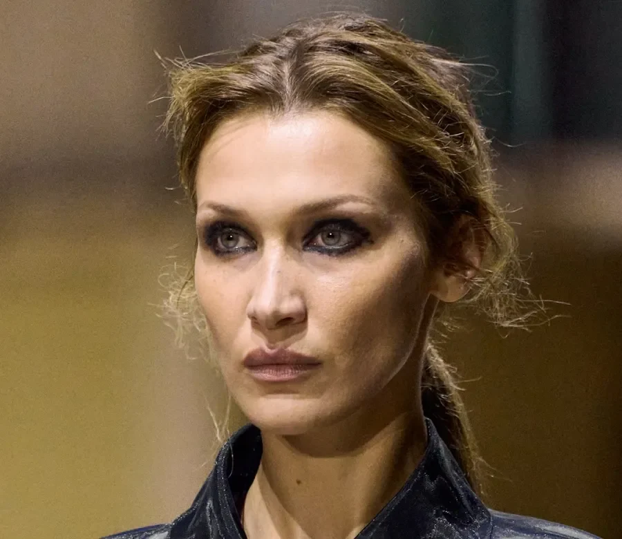 اختارت غوتشي مساراً أكثر درامية عبر عيون سموكي مسحوبة وظلال رمادية مدمجة مع خط كحل أزرق لإضفاء عمق قوي على النظرة. جاءت الشفاه بلون بني غني مع تحديد شفاه أغمق قليلاً لاستعادة روح التسعينيات بروح عصرية. حافظ البلاشر البيج الخفيف على توازن الإطلالة مع النبرات الداكنة في العيون والشفاه. يعكس هذا الخيار شخصية واثقة ومتاحة للتجربة في إطار جريء ومتحرر من قيود الكمال التقليدي.